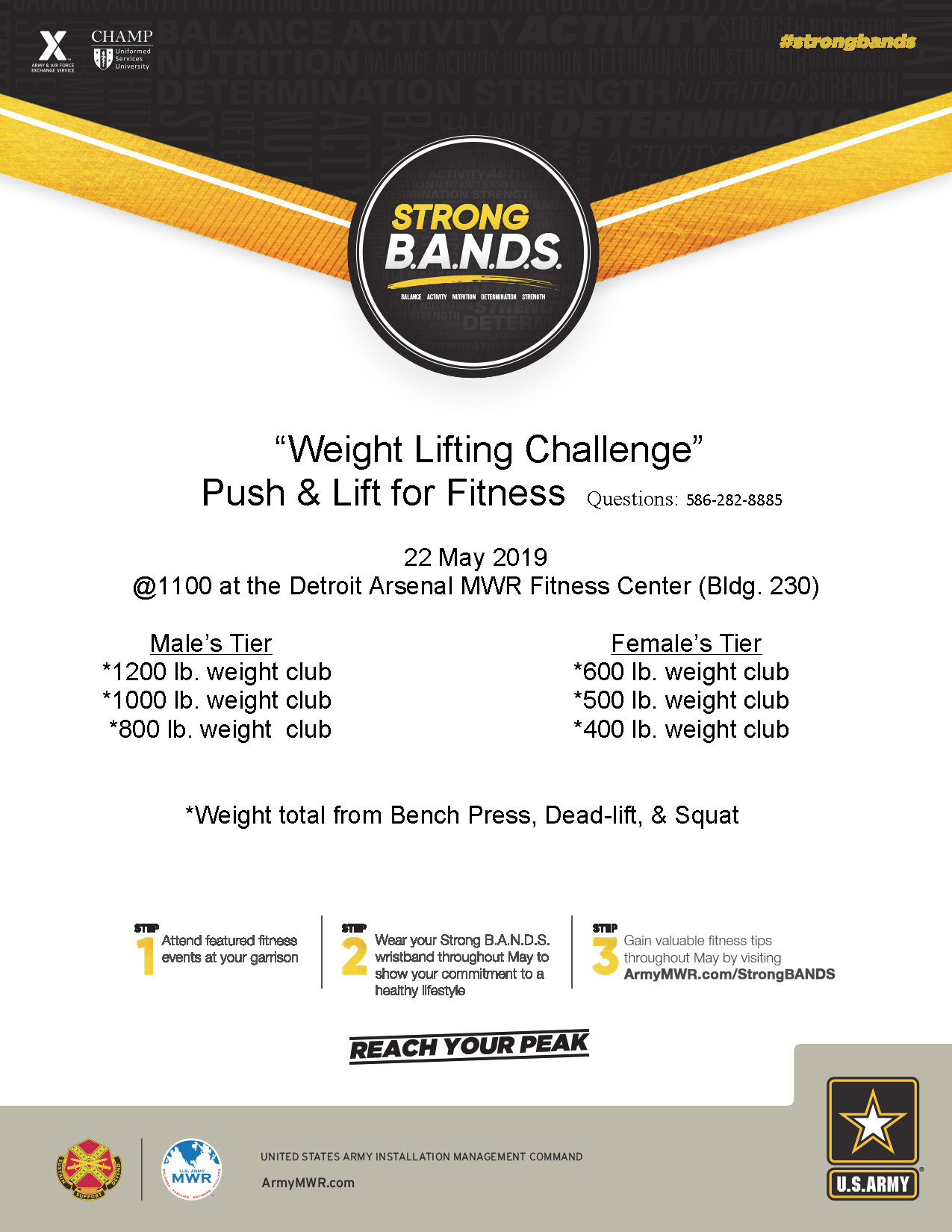 Push & Lift for Fitness @ The Detroit Arsenal (DTA) courtesy of your Family and Morale, Welfare and Recreation